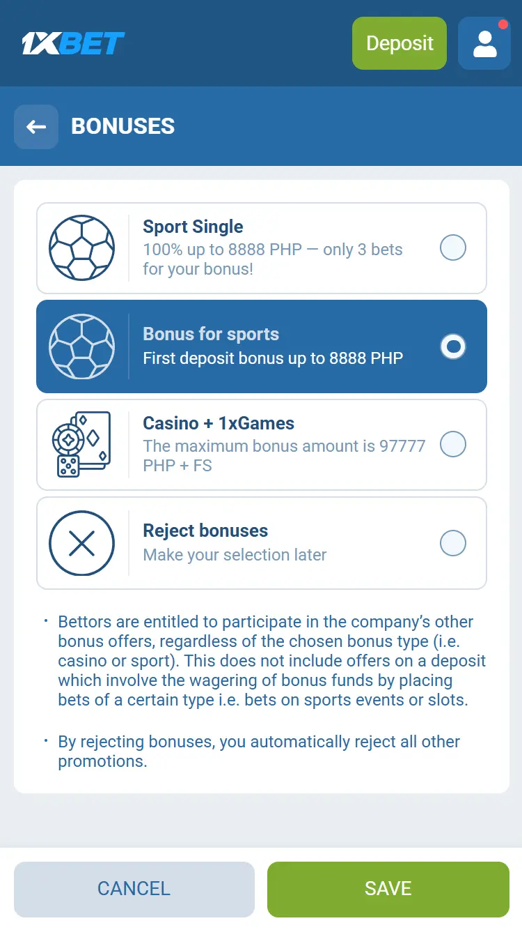 Check your deposit method’s bonus eligibility on the official 1xBet PH promo page before depositing.